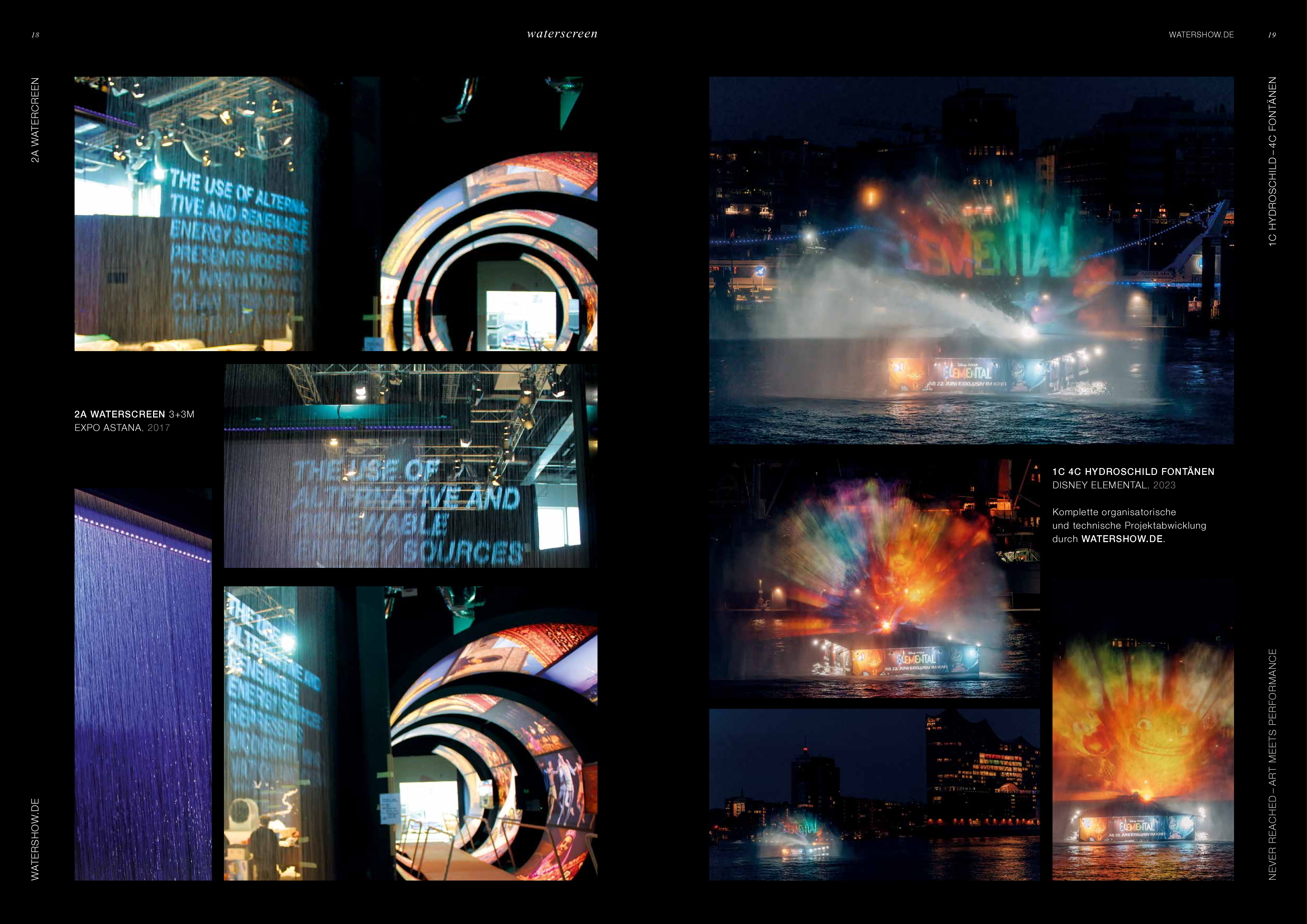 Watershow.de GmbH transforms water into unforgettable experiences. From dazzling fountains and elegant water walls to high-tech waterscreens that write logos and images with falling drops — every show is a one-of-a-kind highlight. With custom solutions, flawless engineering, and stunning visual impact, Watershow.de makes brands shine and events unforgettable.